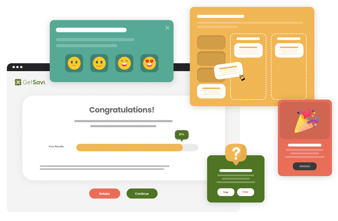 Compared to traditional ‘dry’ training approaches, an engaging learning journey helps learners achieve better outcomes more easily. Our gamified assessments and quizzes capture and hold our learners’ attention and challenges them, ensuring they complete the journey and deliver the desired impact.